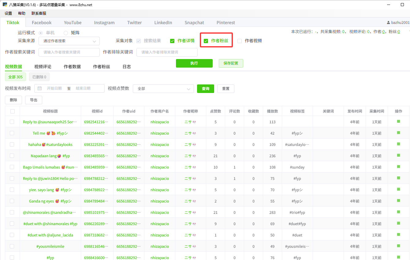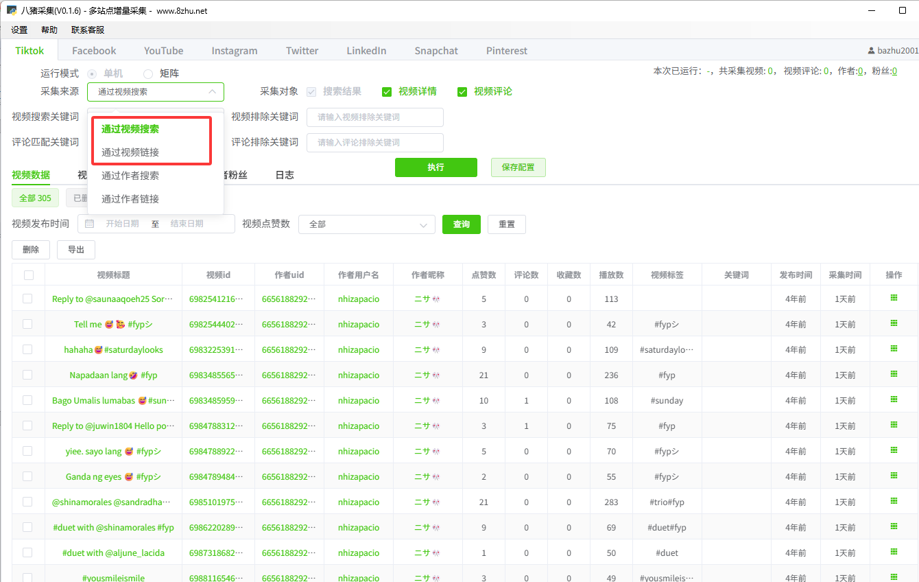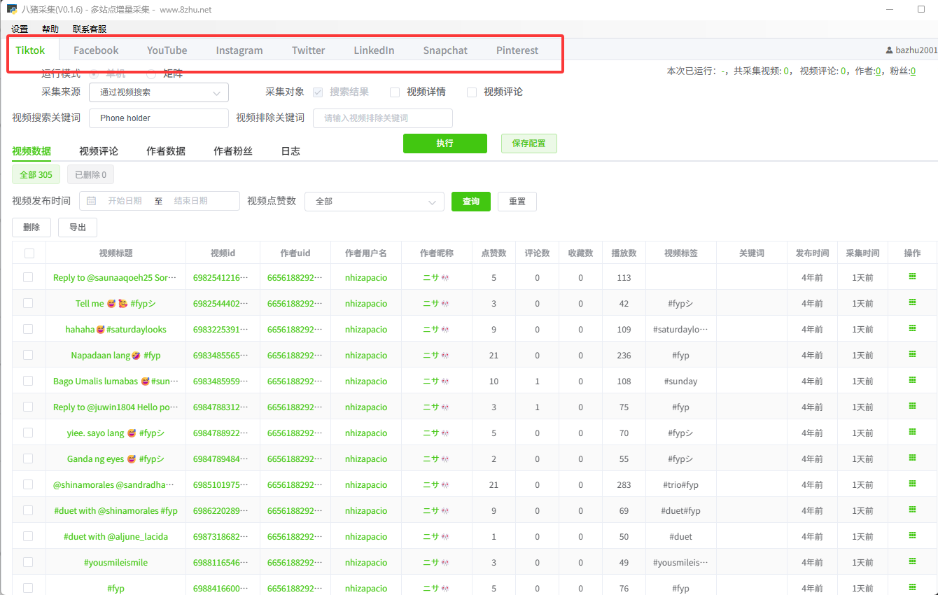 社交媒体:Tiktok、Facebook、Twitter、Instagram、LinkedIn、Pinterest等